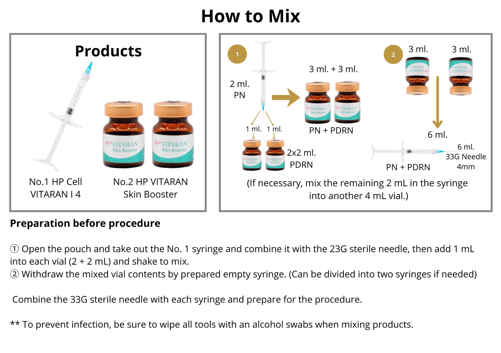 Csatlakoztassa egy steril 23G tűhöz, majd adjon 1 ml-t mindkét ampullához (2 + 2 ml), és óvatosan rázza fel az összekeveréshez.