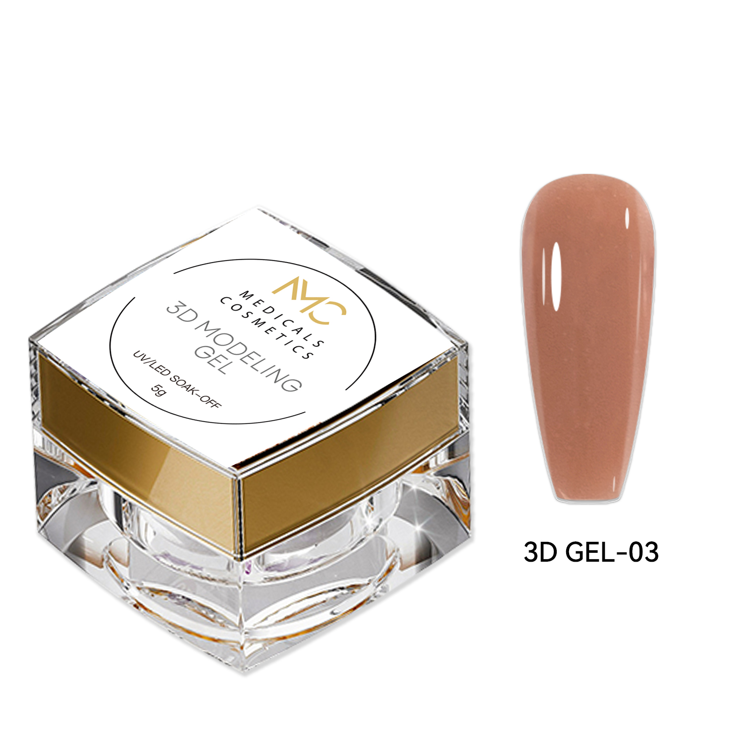 MC Medicals Cosmetics – A 3D Modeling Gel egy UV/LED modellező gél plasztikus 3D körömdíszítéshez. Sűrű, gyurmára emlékeztető állaga van, így nem folyik el, és formázható belőle szirmok, masnik, domború vonalak vagy egyéb minták.