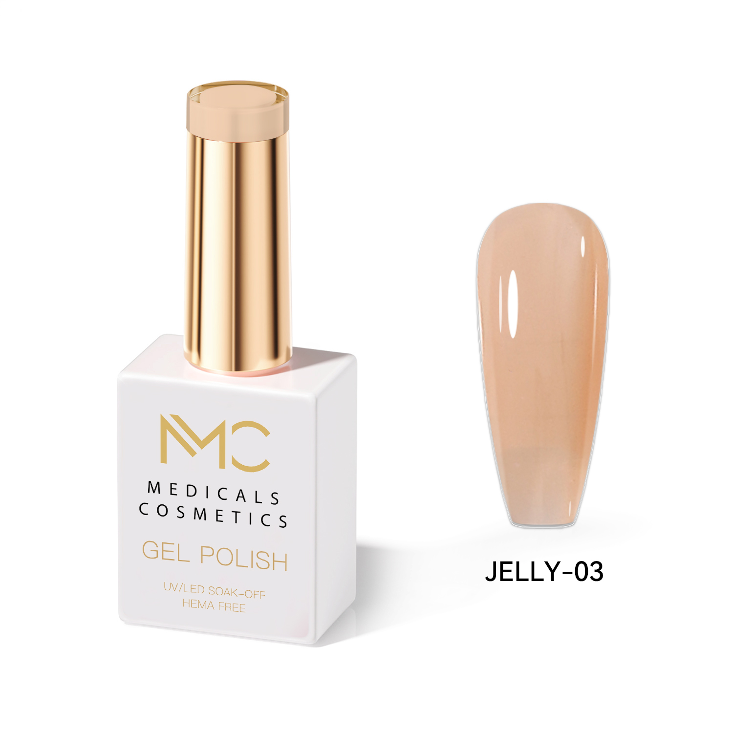 JELLY GEL POLISH HEMA FREE - PROFESSIONAL MEDICALS COSMETICS - NAILS COLOR JELLY GEL MC JELLY 03 - Bézs színű gél körmökhöz UV lámpa alá. Luxusos, átlátszó üveghatású körmök effektusa. HEMA FREE