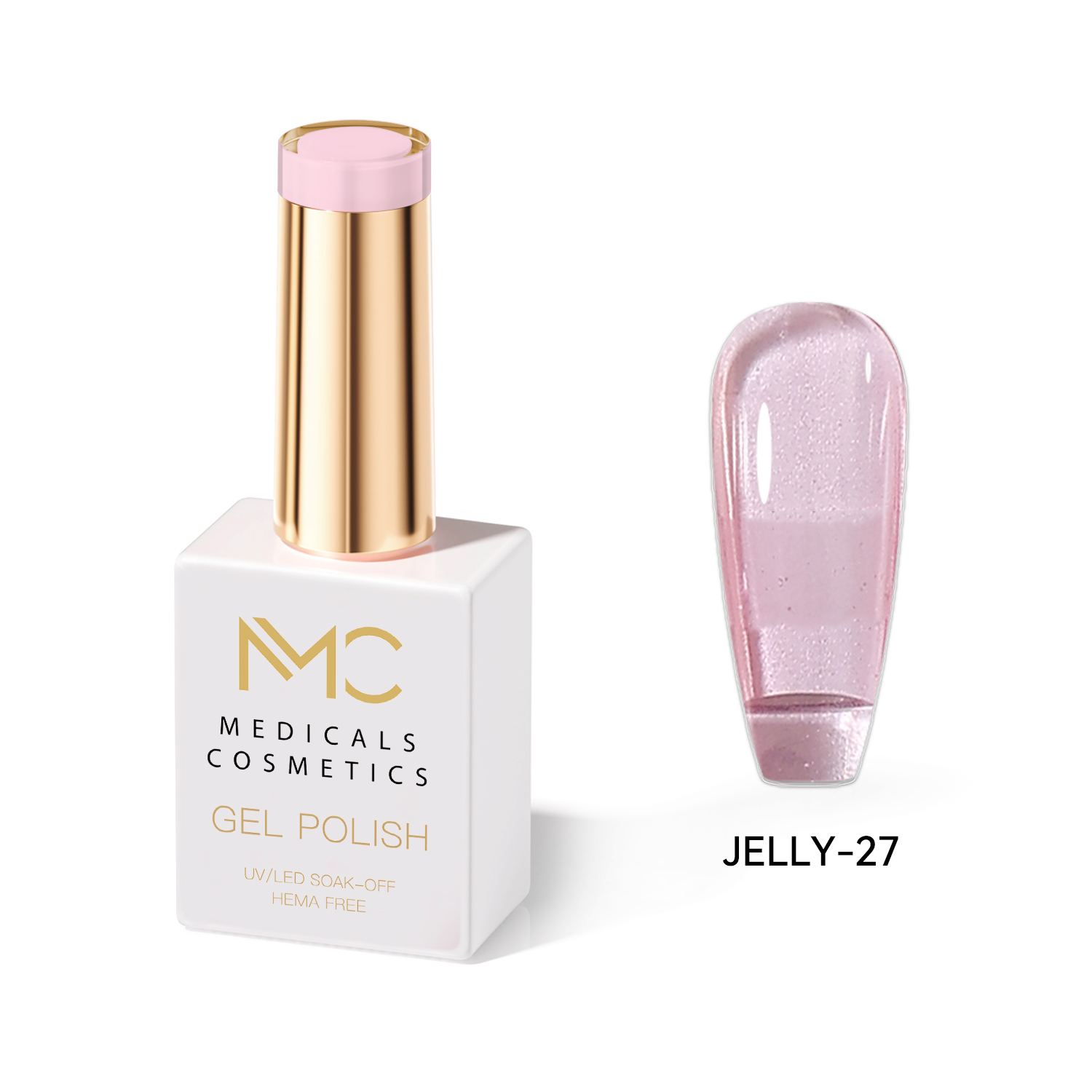JELLY GEL POLISH HEMA FREE - PROFESSIONAL MEDICALS COSMETICS - NAILS COLOR JELLY GEL MC JELLY 27 - Rózsaszín gél körmökhöz UV lámpa alá. Luxusos, átlátszó üveghatású körmök effektusa. HEMA FREE