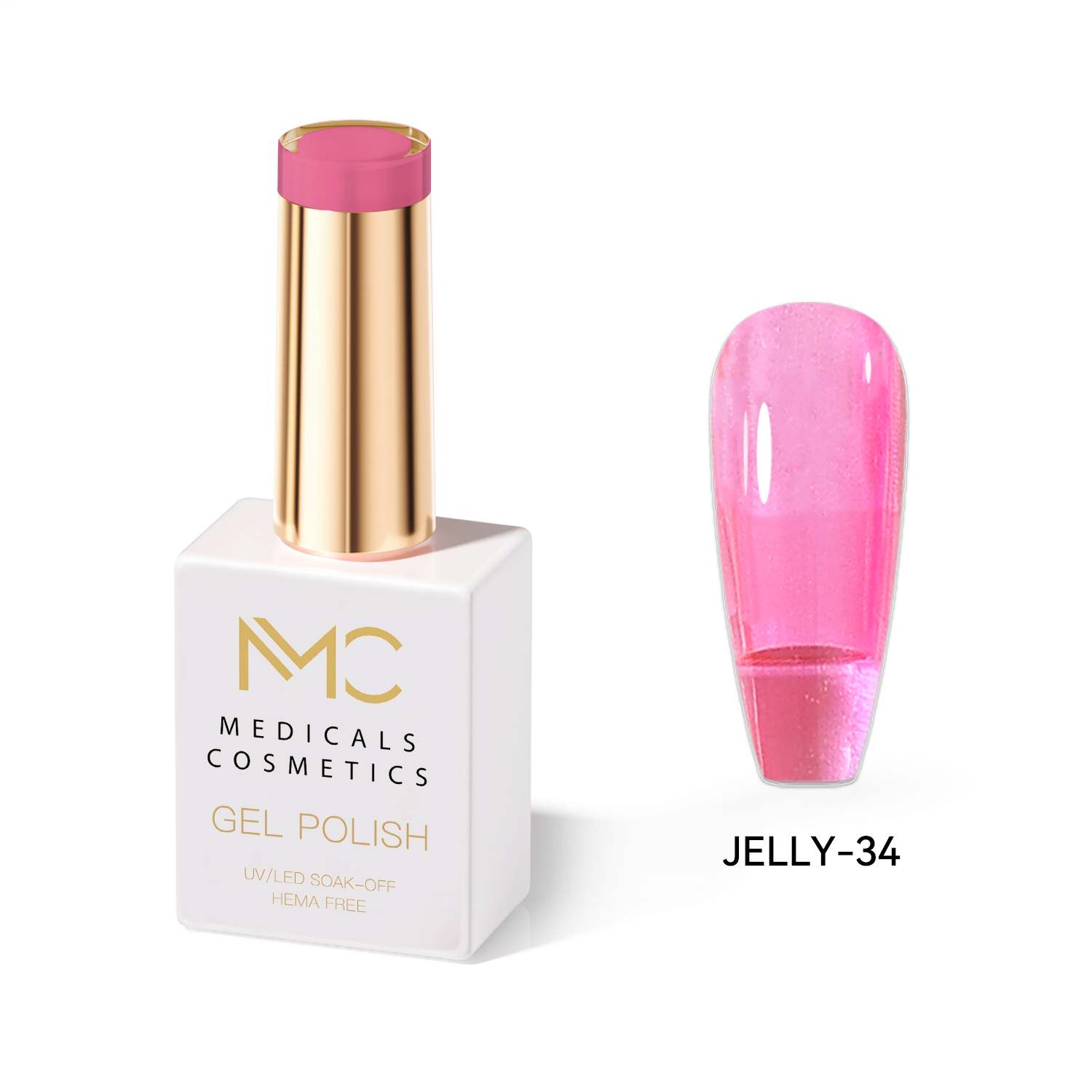 JELLY GEL POLISH HEMA FREE - PROFESSIONAL MEDICALS COSMETICS - NAILS COLOR JELLY GEL MC JELLY 34 - Rózsaszín gél körmökhöz UV lámpa alá. Luxusos, átlátszó üveghatású körmök effektusa. HEMA FREE