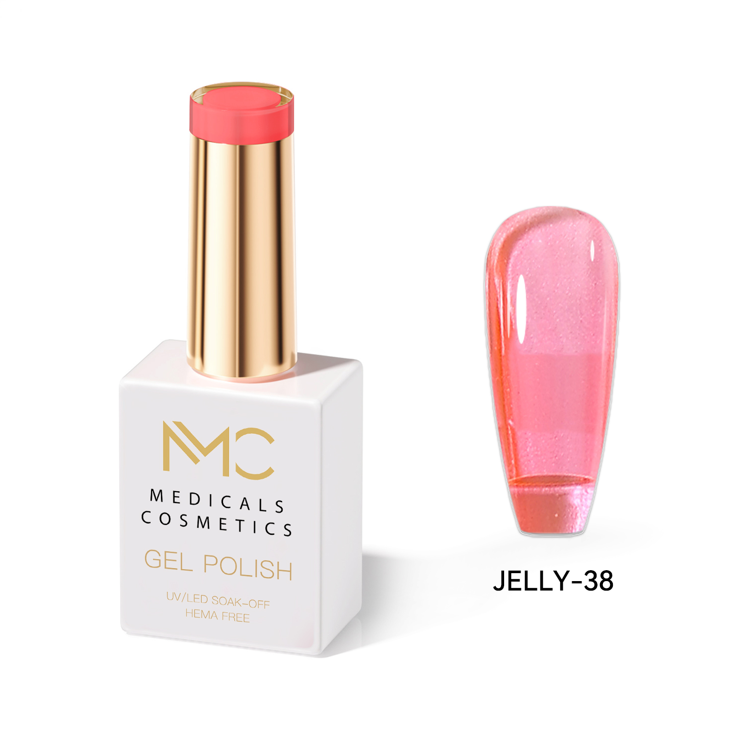 JELLY GEL POLISH HEMA FREE - PROFESSIONAL MEDICALS COSMETICS - NAILS COLOR JELLY GEL MC JELLY 38 - Rózsaszín gél körmökhöz UV lámpa alá. Luxusos, átlátszó üveghatású körmök effektusa. HEMA FREE
