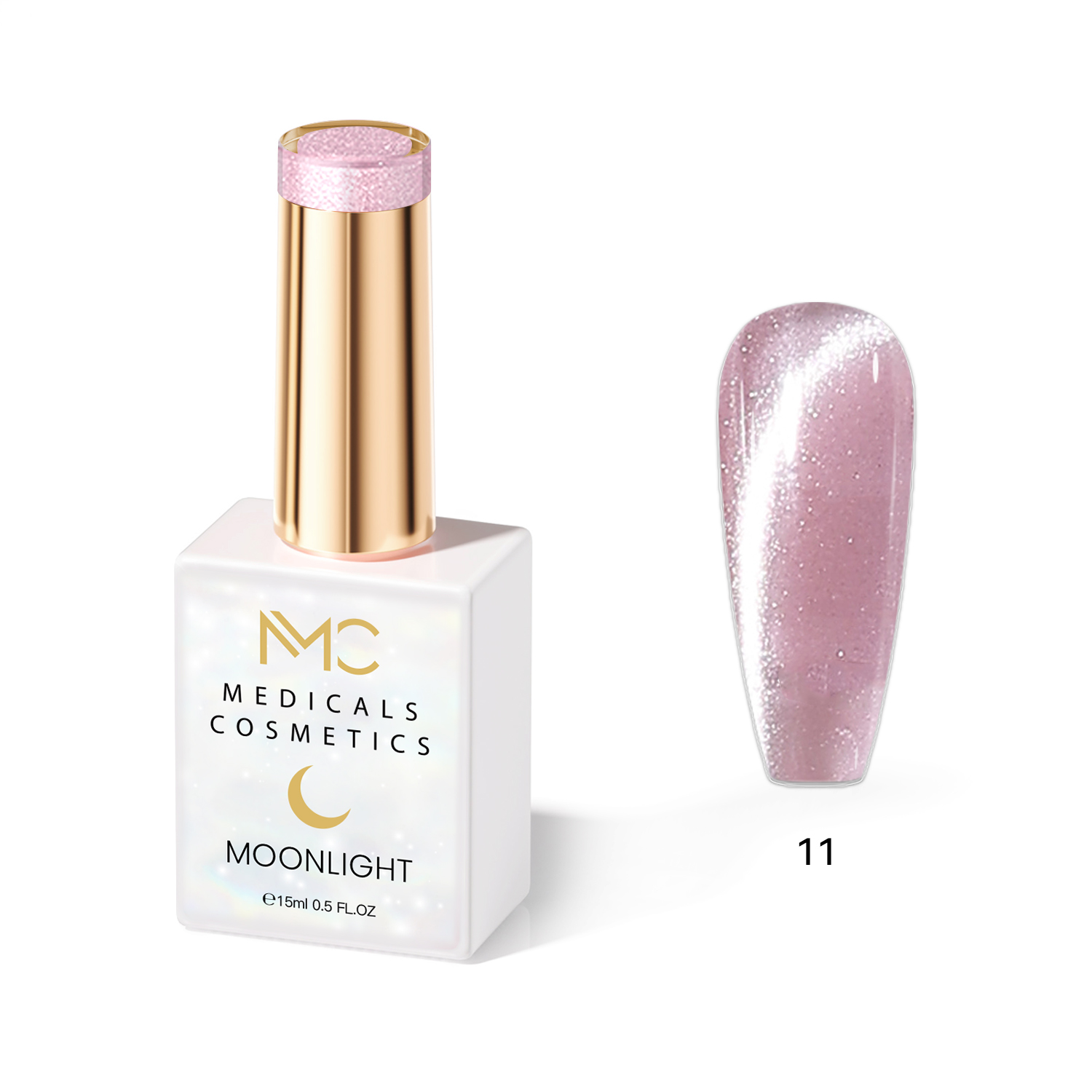 MOONLIGHT GEL POLISH HEMA FREE NAILS COLOR GEL PROFESSIONAL MC MEDICALS COSMETICS MC MOONLIGHT 11 Átlátszó, gyöngyházfényű rózsaszín körömzselé csillogó hatással és 3D effektussal UV lámpa alatt. HEMA FREE