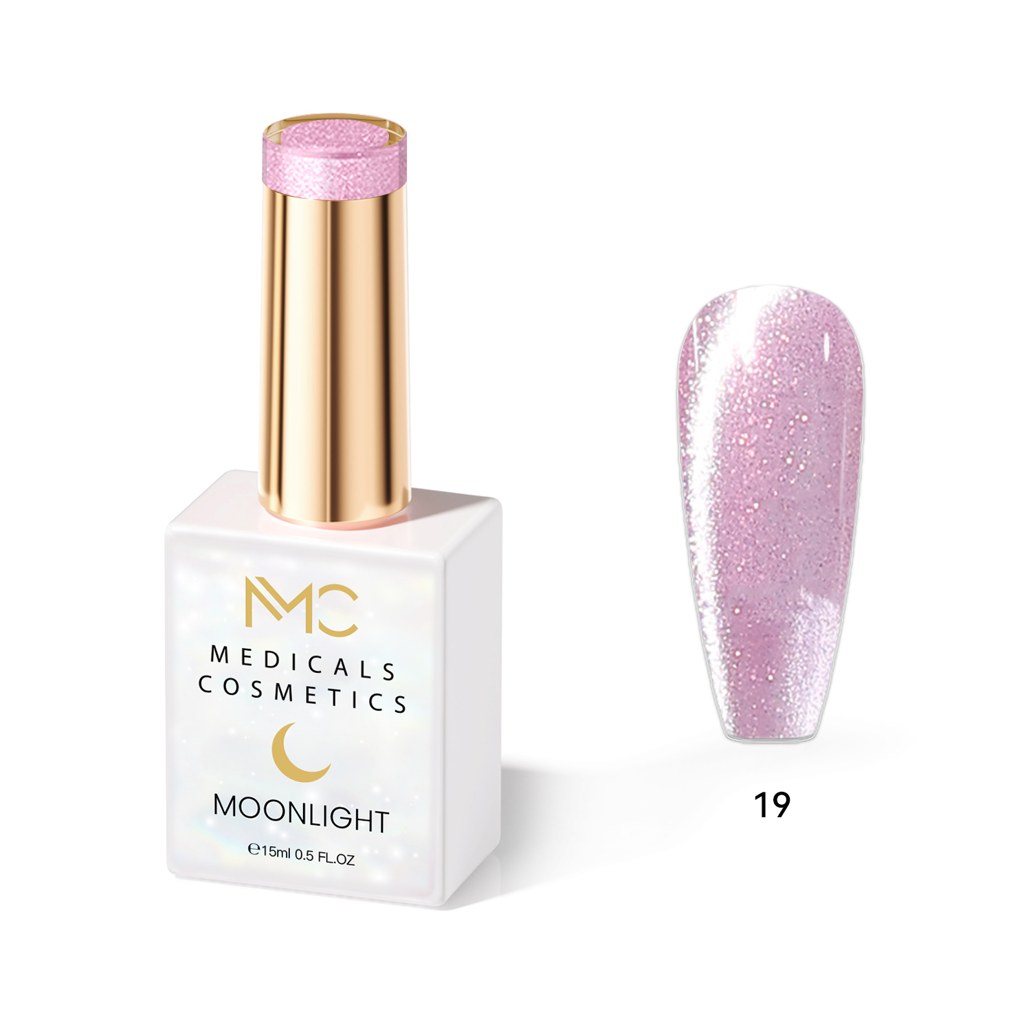 MOONLIGHT GEL POLISH HEMA FREE NAILS COLOR GEL PROFESSIONAL MC MEDICALS COSMETICS MC MOONLIGHT 19 Átlátszó, gyöngyházfényű lila körömzselé csillogó hatással és 3D effektussal UV lámpa alatt. HEMA FREE