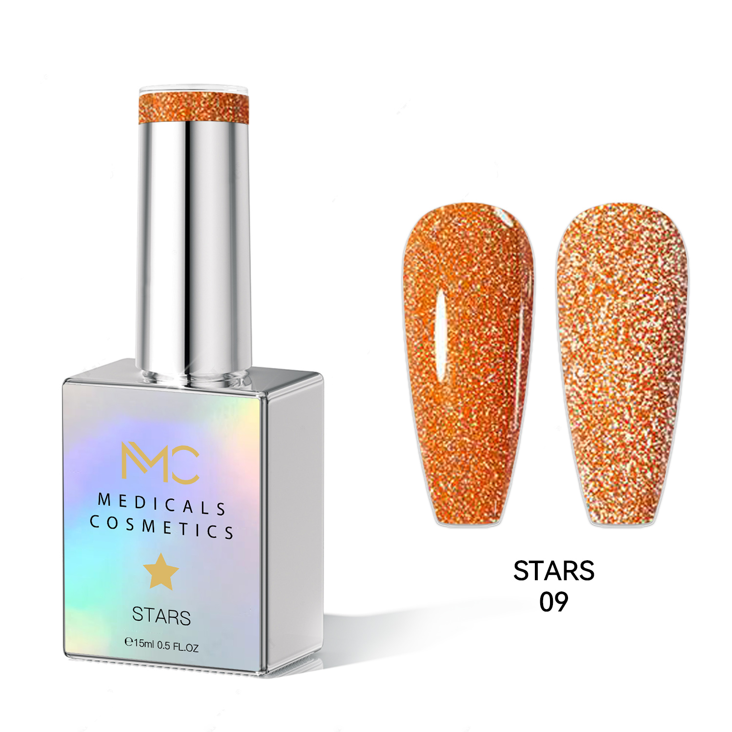 STARS GEL POLISH - HEMA FREE - PROFESSIONAL MEDICALS COSMETICS - NAILS COLOR REFLECTIVE GEL MC STARS 09 - Narancs körömzselé csillogó hatással, UV lámpa alá. HEMA FREE