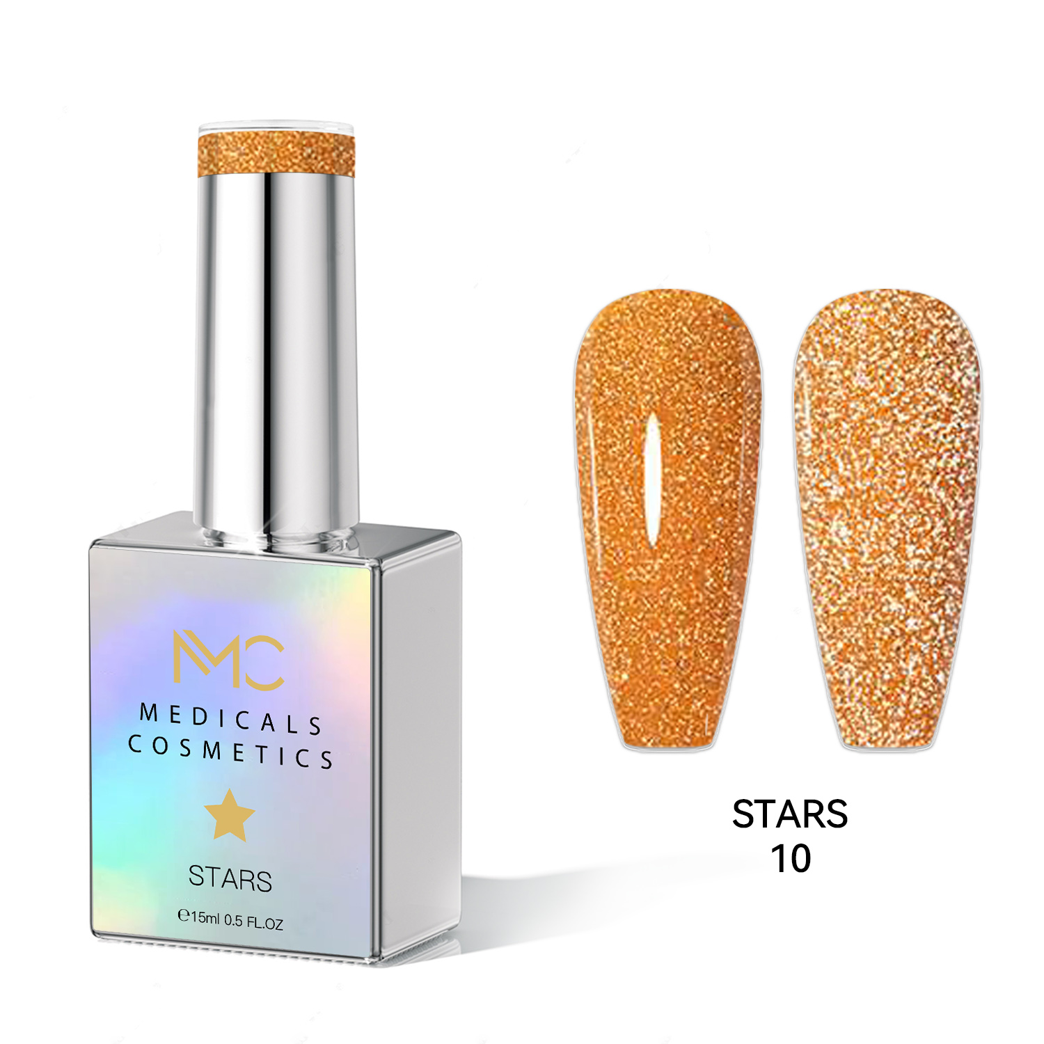 STARS GEL POLISH - HEMA FREE - PROFESSIONAL MEDICALS COSMETICS - NAILS COLOR REFLECTIVE GEL MC STARS 10 - Narancs körömzselé csillogó hatással, UV lámpa alá. HEMA FREE